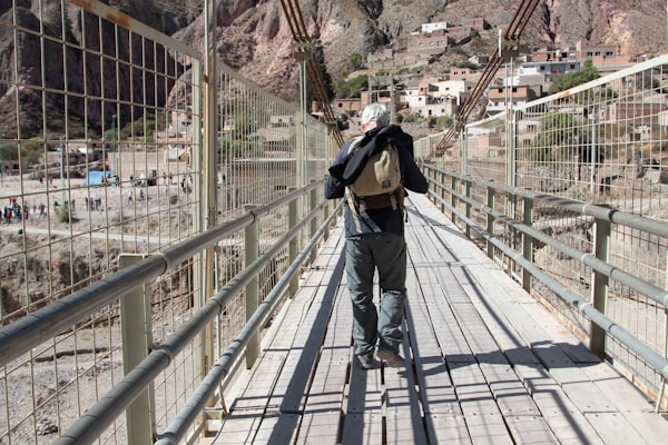 a person walking on a bridge