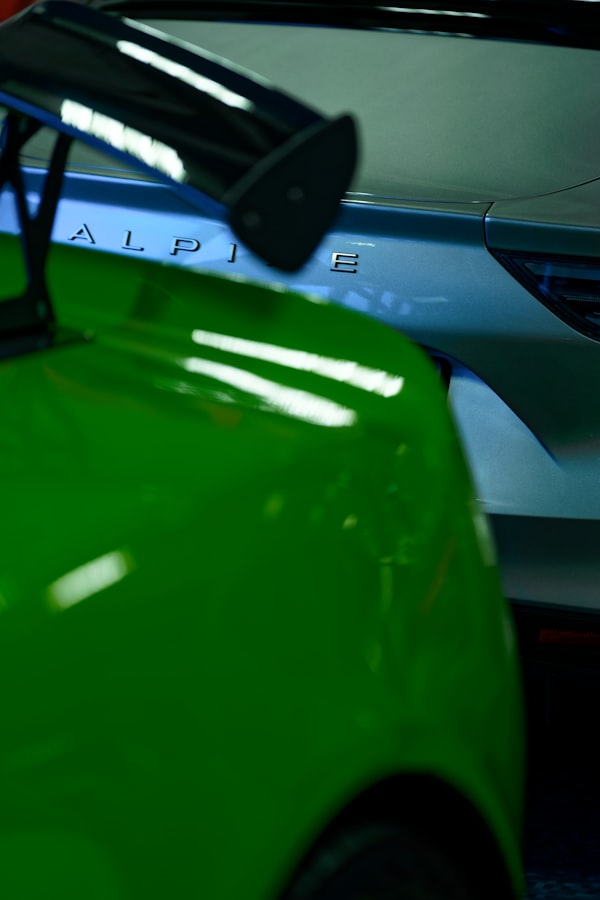 https://t.co/eyyo9JyKOta close up of a green car parked in a garage