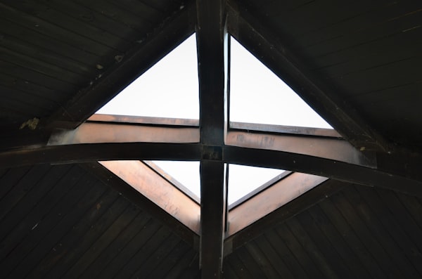 a view of the roof of a building through a window
